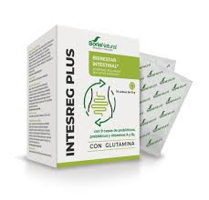 Soria Natural Intesreg Plus es un complemento alimenticio en sobres especialmente formulado para favorecer la salud digestiva integral y equilibrar la microbiota intestinal. Su fórmula combina probióticos, prebióticos (inulina), L-glutamina y vitaminas (B6 y A), ingredientes que actúan de forma sinérgica para cuidar la flora intestinal, apoyar la mucosa del intestino y contribuir al bienestar general del sistema digestivo y del sistema inmunitario.